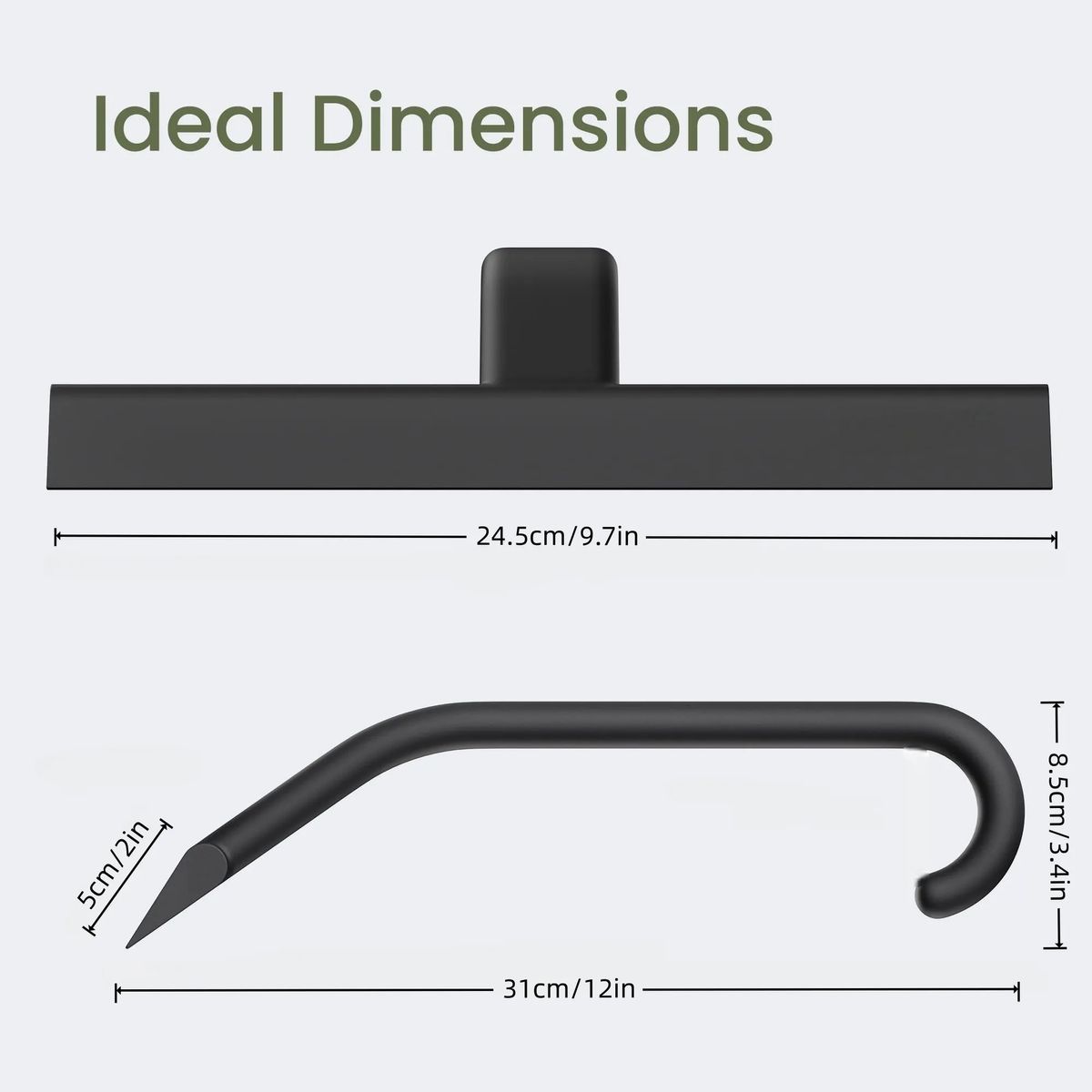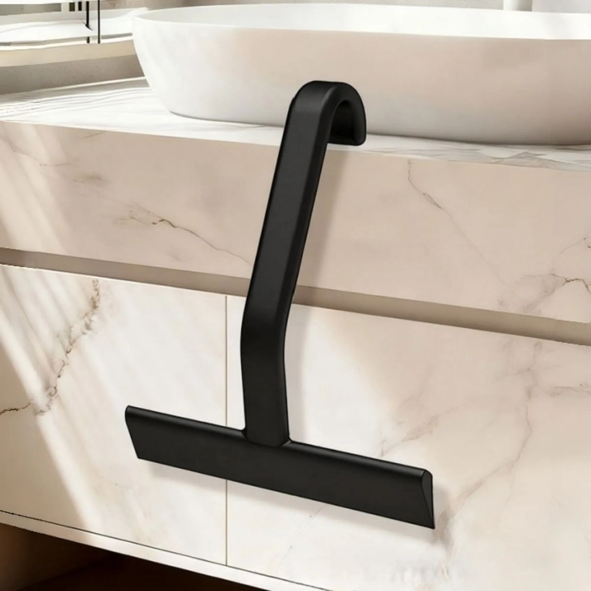 The silicone shower squeegee is designed with an integrated hook for easy hanging on shower doors walls rods handles and sinks No drilling needed The flexible silicone blade wipes water soap scum limescale and steam away from glass shower doors mirrors car windows tiles and countertops Ergonomic grip keeps a comfortable hold in wet conditions Seamless construction with internal core prevents crevice mold and cracking Ideal for bathroom household car office hotel cleaning and daily use